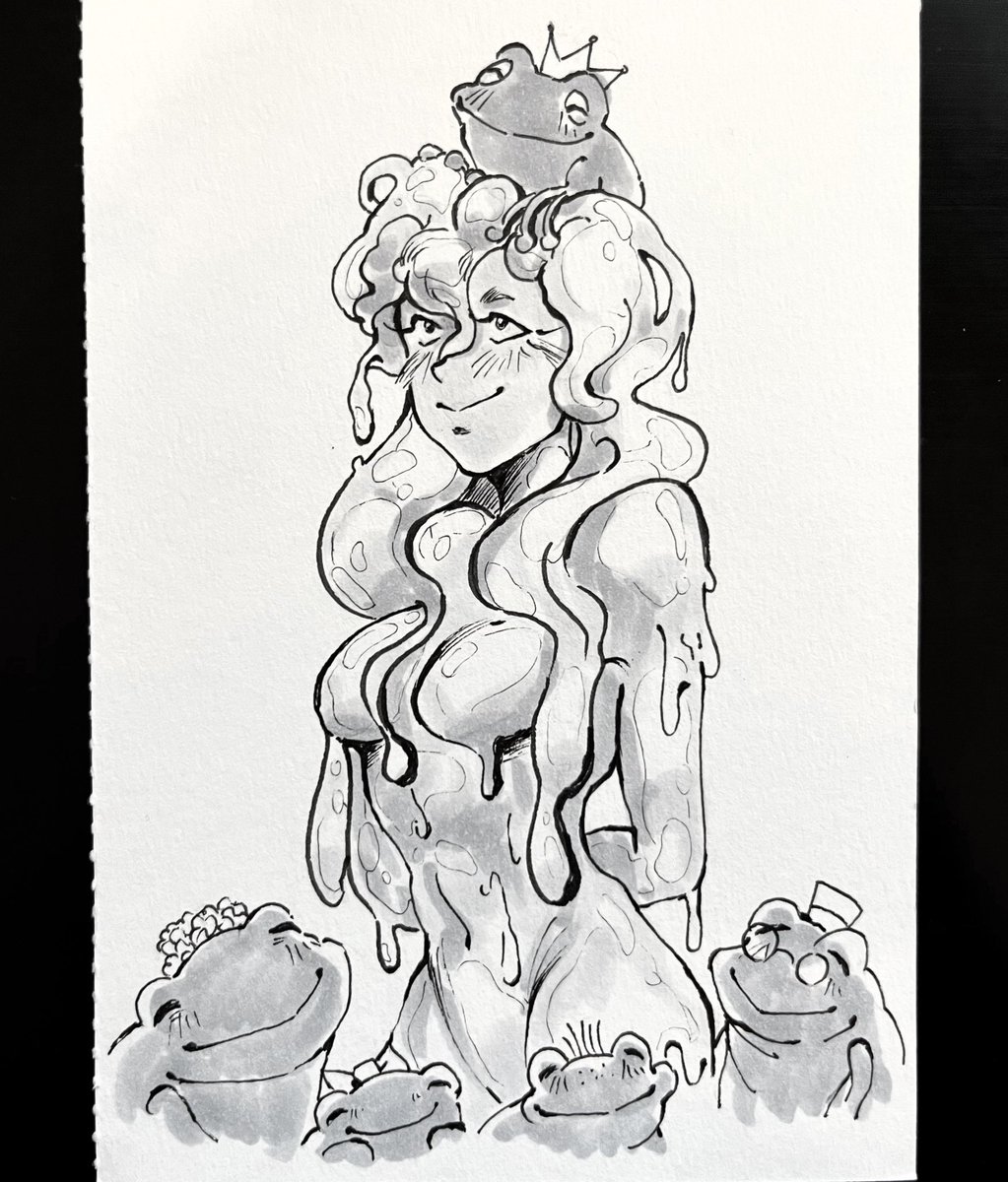 Day 23 of #cutegirltober2022! The theme is Froggy! Went for a cottage core theme here! Also was inspired by a friend for this design <3 ~~~~~~~♡~~~~~ #inktober #art #traditionalart #kawaii #cute #anime #harajuku #froggy #frog #cottagecore #phrog #ukartist