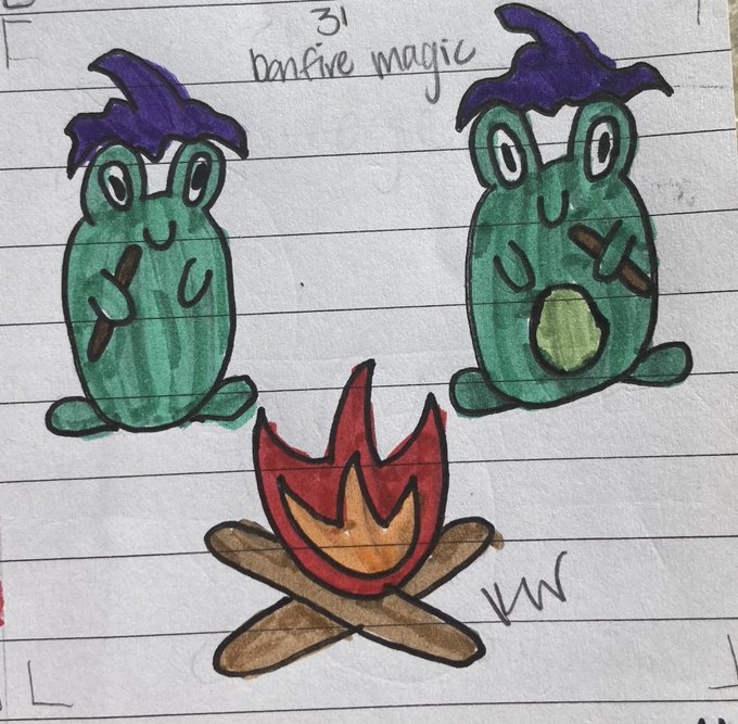 31. Bonfire magic Hehe, sorry for the spamming :D This is it! We lived through another october, and this year I'm really grateful for that #froggyfall #inktober #inktober2022