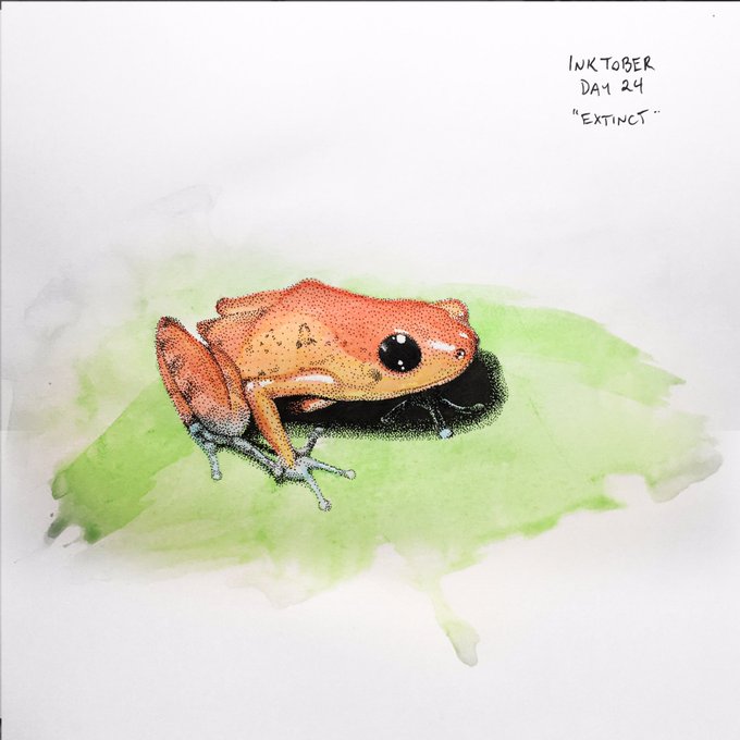 Day 24: “extinct”. The Splendid Poison Frog (Oophaga speciosa). Classified extinct in 2020. . . . #inktober #inktober2021 #extinct #frog #frogs #frogstagram #environmentalism