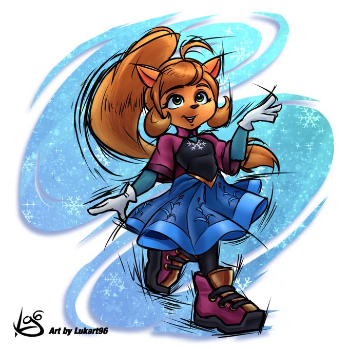 Coco bandicoot enters the frozen field with her new outfit. I guess its easy to see that the outfit is based on Anna from Disney´s Frozen.❄️💙 Would you like to use this skin? #Cocobandicoot #CrashBandicootFanart #CrashBandicoot #Mariostrikers #gaming #disney #frozen #fanart