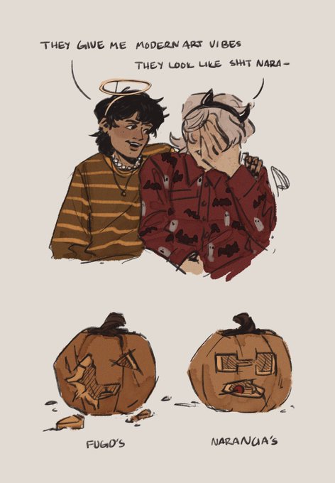 Funara crafting date can only go south 👍🎃✨ I love drawing these two idiots… #pannacottafugo #naranciaghirga #funara #fugonara