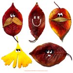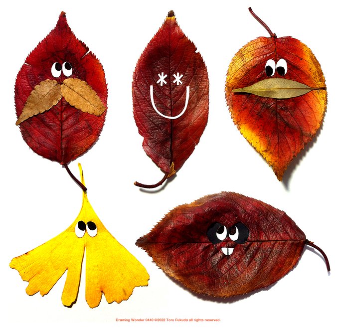 Today's Illustration! 当方のアーカイブ作から。採取した落ち葉にガッシュで顔などを描いてます。 #illustration #drawing #characters #torufukuda #fukudatoru #紅葉