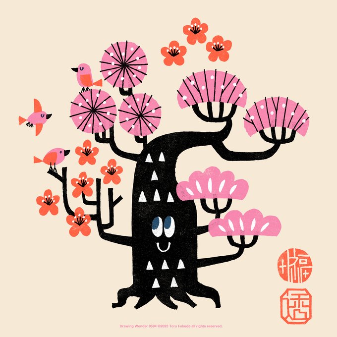 Today's Illustration! 当方のアーカイブ作品から。大好きな梅と桜の季節。残念な花粉の季節でもあるけれど。 #illustration #drawing #characters #torufukuda #fukudatoru #spring