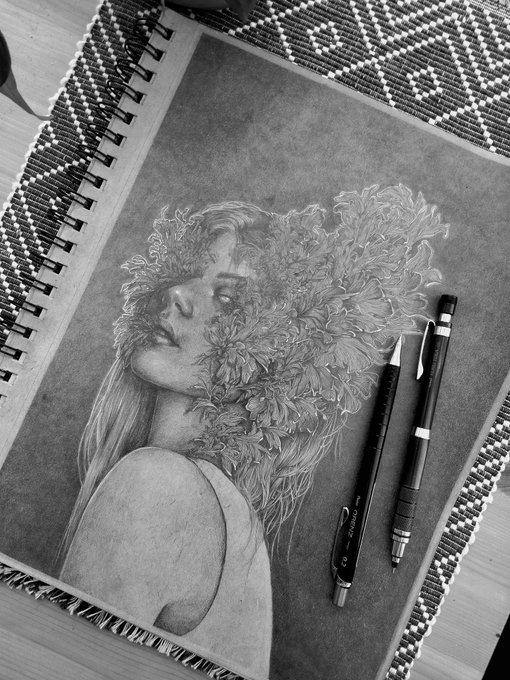Gonna take a break on this one for new and start a new sketch #art #artwork #drawing #pencil #portrait #surreal #mushrooms #fungai #conceptart #illustration #wip #workinprogress #pentelorenz #blackandwhite #ArtistOnTwitter