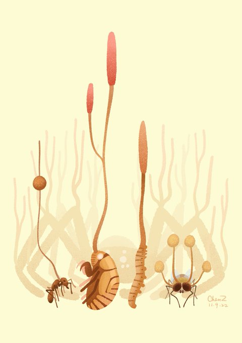 The weird art made by Ophiocordyceps, the insect killing fungi, which inspired the Last of Us and my new illustration 🐛🍄#insect #insects #Entomology #artistsontwitter #Artists #DigitalArtist #digitalart #graphicdesign #fungi #nature #SciArt #science