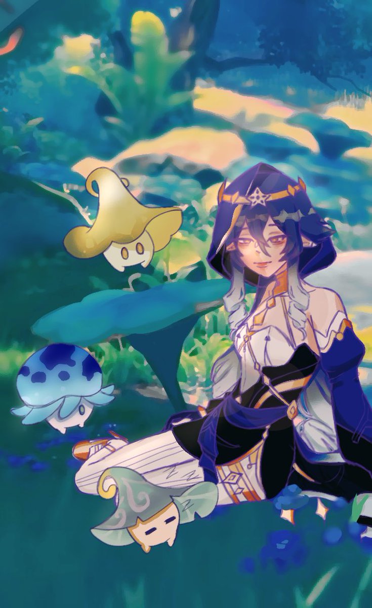 Scara Family Photo! It's a hat family T-T Featuring Nahida. #GenshinImpact #scaramouche #Nahida #aranara #fungi #fanart