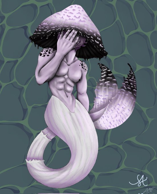 Just a fun guy who thrives in water. #funguary #funguary2023 #digitalart #DigitalArtist #art #fungus #mushroom #faerie #fae #fairy #shroom #underwater #fantasy #PsathyrellaAquatica #oopsyoufoundme