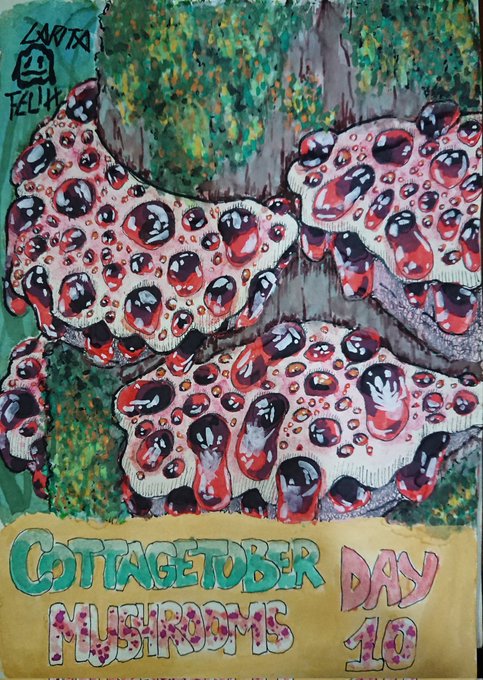 🍄Hydnellum peckii🍄 o también Hongo diente sangrante 🍄🦷🩸 Me pareció interesante así q lo pinté 👌 #cottagetober #inktober2022 #Mushroom #mushrooms #fungus #bleedingtoothfungus #hongo #fungi #inktober2022day10