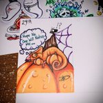 29th Inktober: “Hope No One Notices Me…”🎃 🦎 🕷 🕸 Hehehe, I think this one is pretty silly but i love it. They chameleon is camouflaged with the pumpkins and is wearing that goofy “🥸” disguise.😆 #camouflage #ink #halloweenart #inktober #chameleon #funnyart