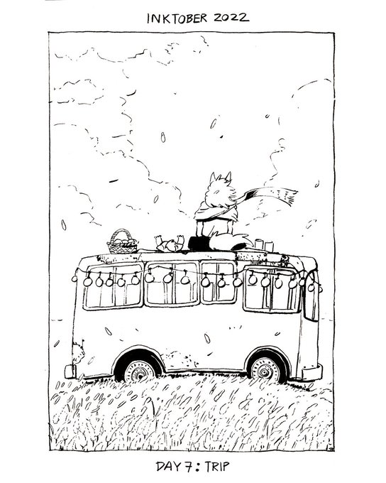 【Inktober 2022】Day 7 : Trip I love to travel together, stay together #furry #furryart #furryfandom #wolffurry #Furryartist #inkart #traditionalart #furryartwork #furryfandomart #furrymuscle #omicrono #muscle #trip #inktober2022 #inktober #day7 #inktober2022day7 #van