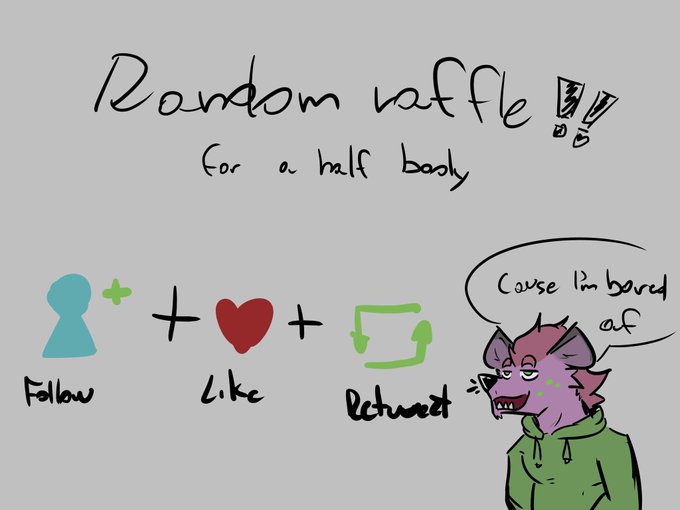 Random raffle incoming!! Winmers will be announced next week good luck everyone #furry #furryart #Furryartist #furryraffle #ArtistOnTwitter #furryartwork