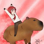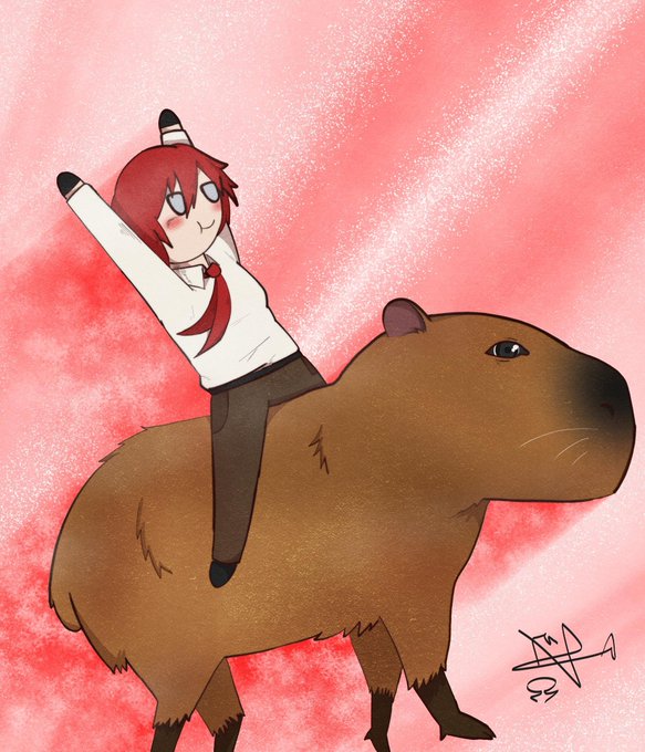 So a random idea I had when I saw a video about capybara, and I remembered @Uirusu_chan who loves these creatures, so why not Hanny riding one, right? #fvmarts #fanart #digitalart #illustration #artwork #Capybara