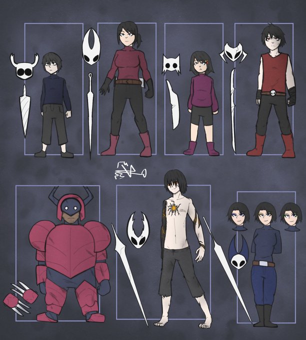 Here's a set of Hollow Knight gijinka, and I'm very proud and happy on how they look, drew my oc vessels for fun! #fvmarts #fanart #digitalart #illustration #videogames #originalcharacter #oc #HollowKnight #indiegame #metroidvania #SilkSong #fvm_arts #ArtistOnTwitter