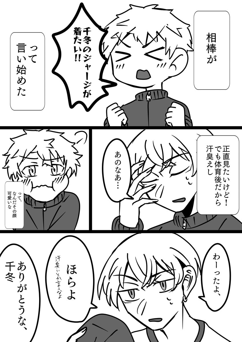 #fytk_60min ふゆタケWebオンリーオマ恋ワンドロiライ1回目 お題より「我儘」「背中」「彼ジャージ」 11:00-12:35(35分オーバー)(ピクスク内で遊んでたら時間過ぎてたw) 三つ全部詰め込みました❄️🎍