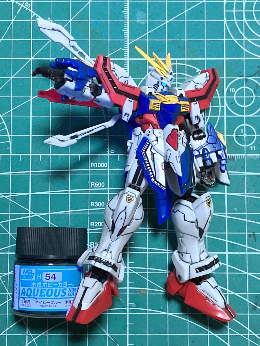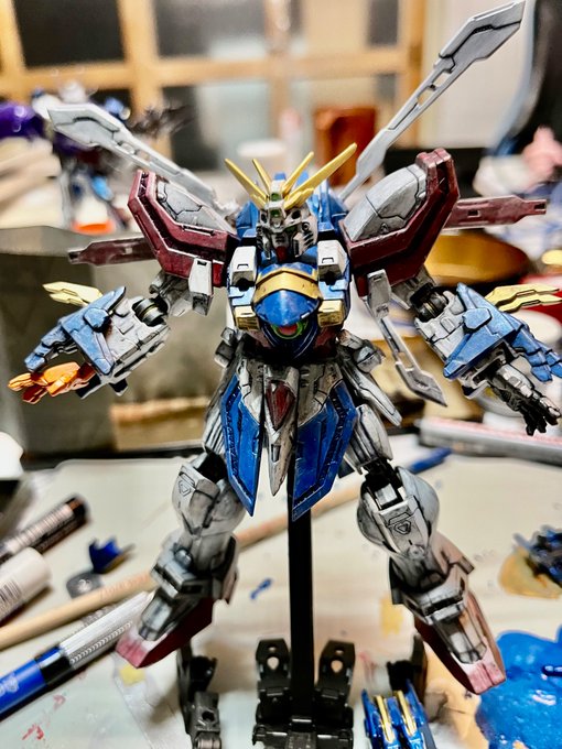 Gフレームゴッドガンダム墨入れ完了。ディテールは素晴らしいが、色々やってたら可動があまりできなくなってしまったという本末転倒。 #gフレームfa #ゴッドガンダム #ガンプラの画像を貼るとRTされると聞いて #ガンプラ好きな人と繋がりたい