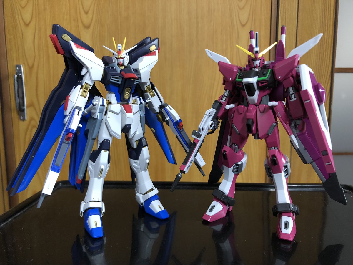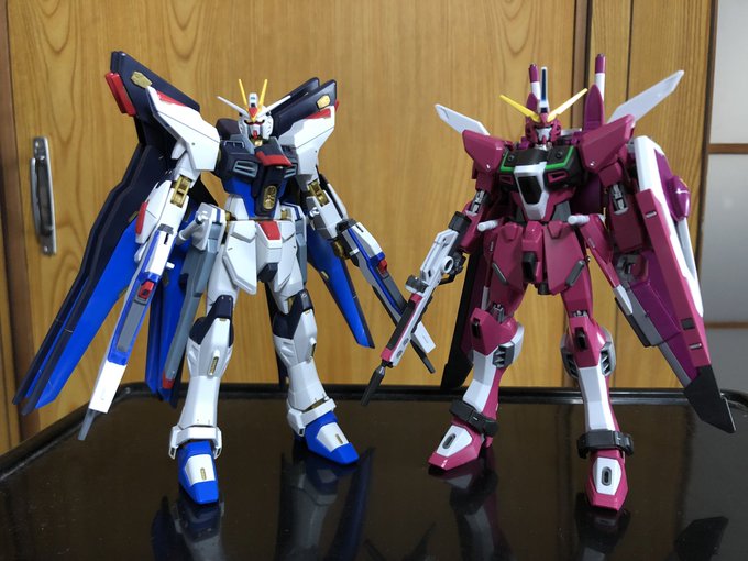 #ガンダムを見たことがない人が騙されるような嘘をつけ 主人公機(左)とライバル機(右)。 #ガンプラ #g_seeddestiny #ガンプラ好きと繋がりたい #ガンプラの画像貼るとRTされると聞いて