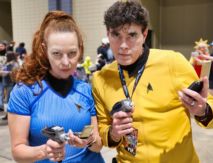 This couple found love — despite being from two different universes (Kelvin and Prime). As seen at the @GalaxyConRich in Richmond, Virginia. #startrek #cosplay #galaxycon