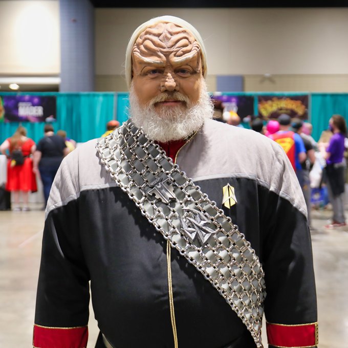 Everyone was nervous as Worf prowled around the con. He explained that he was “Worf from the future.” His Baldric Sash was home made. As seen at the @GalaxyConRich in Richmond, Virginia. #startrek #cosplay #galaxycon