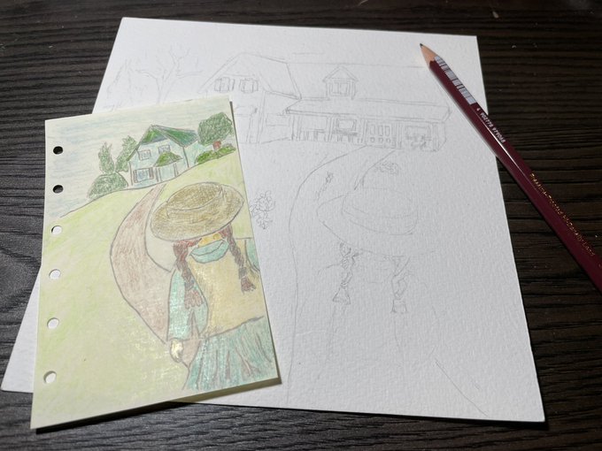 #イラスト好き #イラスト好きな人と繋がりたい #galleriaosolemio #myanne 昔に手帳リフィルに描いた赤毛のアンのイラストを少し大きな紙で再現中。 うーむ、色々追加しないと隙間からね(笑)