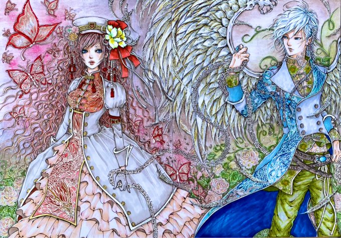 「クピドとプシュケ」 (プシュケ) ❤️WEB展示販売会「LOVERS展」2作一対作品💕🥰💕 主催:Galleria O Sole Mio 期間:6/4〜6/13 galleria-osolemio.stores.jp #galleriaosolemio #オリジナルイラスト #アナログ #イラスト好きな人と繋がりたい #みんなで楽しむTwitter展覧会