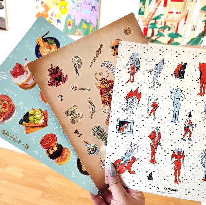 They’re finally here! Our @mamomiji, @tomishunter, and @moto583 sticker sheets are now available in-person and online! Check out the new arrivals here: gallerynucleus.com/store/statione… #stickersheet #gallerynucleus #illustration #dungeonsanddragons #rpg #fantasy #foodart