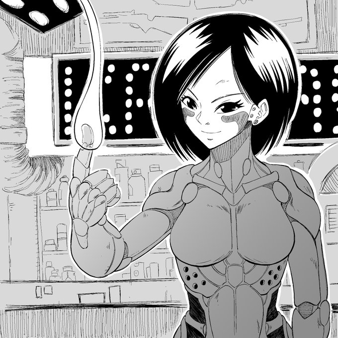 #inktober 2022, toujours dédié à #gally #alita #manga #Gunnm de #yukitokishiro . Une touche de gentillesse dans un monde sans pitié : #loucollins, opératrice du GIB.