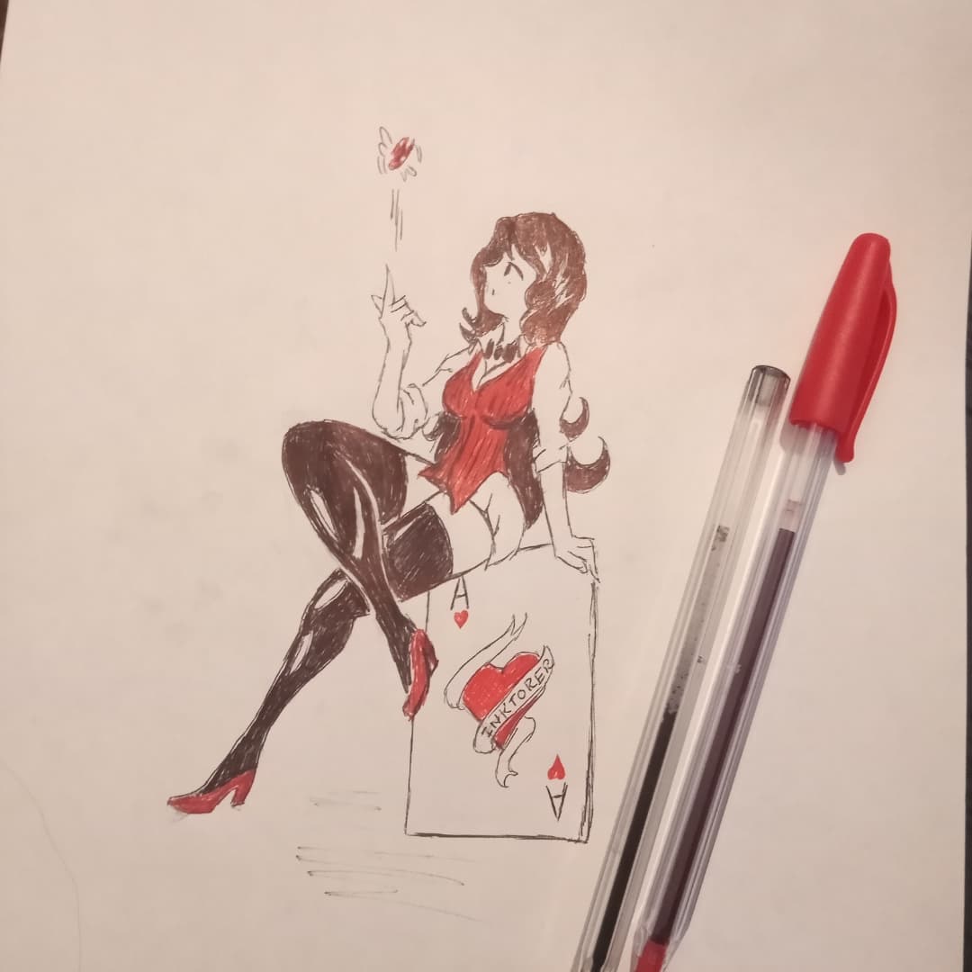Inktober 2021 day 31: Risk (1/2) #inktober #inktober2021 #risk #sketch #illustration #traditionalart #blackandwhite #aceofhearts #redandblackart #gambling #poker #artwork #conceptart