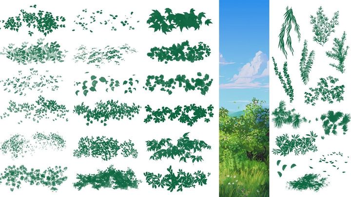 This pack by PIXELREF contains brushes to create a Ghibli stylised vegetal scenery with a traditional touch. The brush settings allow you to paint with just a few brushstrokes! 🌿 buff.ly/3nUQuDq #digitalart #gameassets #conceptart #art #procreate #photoshop