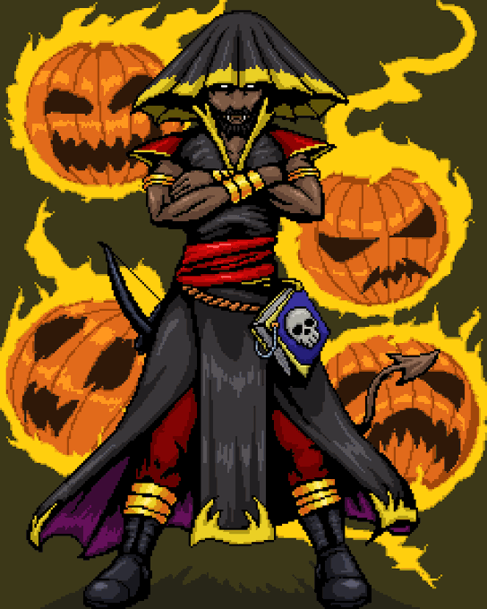 Idle Champions Fanart Monday! This is Shaka's Halloween outfit. Shaka is a Tiefling Warlock. #pixelart #idlechampions #fanart #gamecharacter #halloween #shaka #tiefling #warlock #aseprite