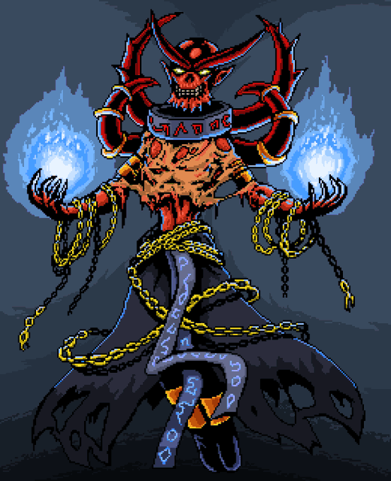 Idle Champions Fanart Monday! Halloween is here and Wulfgar is geared for it! Wulfgar is Human Barbarian. #idlechampions #fanart #pixelart #digitalart #wulfgar #barbarian #halloween #skeletons #gamecharacter