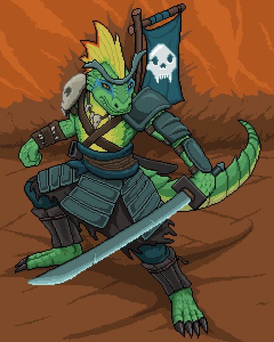 Idle Champions Pixel Fanart Monday! This is Korth, a lizardfold Samurai Fighter #idlechampions #korth #lizardfolk #fighter #samurai #pixelart #gamecharacter #aseprite #ArtistOnTwitter