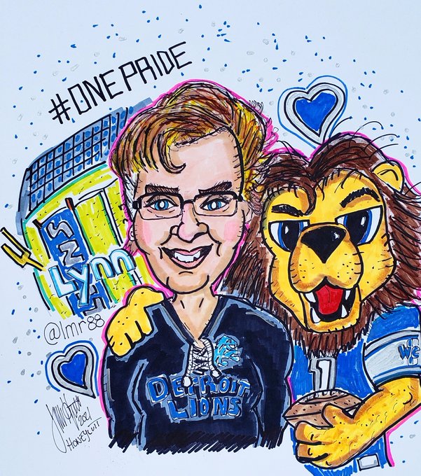 #GameDay #OnePride @lmr88 is definitely the biggest @Lions fan I know! 🦁🏈💙 Go Lions! @RoaryNFL #HoneycuttDrawMe #FanArt #DetroitLionsFootball