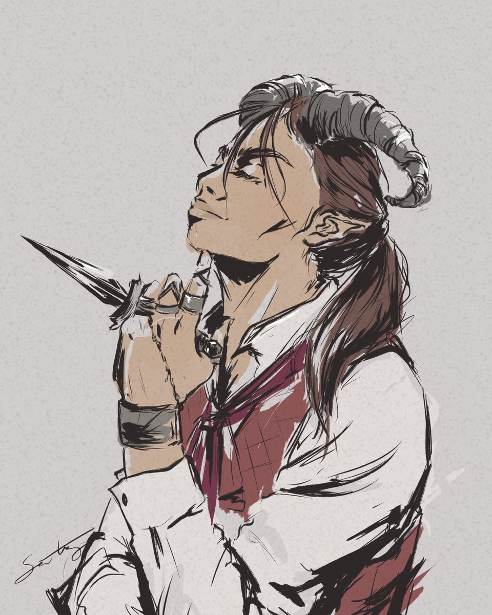 @GamersGroceries First commission done! A tiefling bard who could also moonlight as a fantasy model. #GamersForGroceries #dndart #ttrpgart