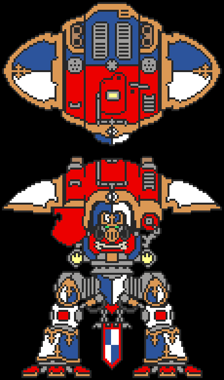 Had a gaming buddy want something to help him plan out color schemes for an Imperial knights army he is building so I did what I do best and built him a template to mess around with. Not 100% to scale but it gets the job done. #pixelart #gamesworkshop #warhammer40k