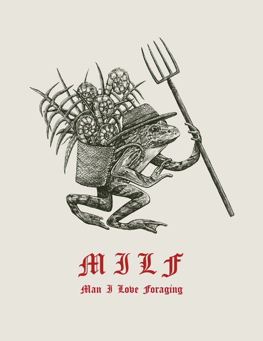 MILF (man, I love foraging) #frogs #inkdrawing #illustration #cottagecore #faecore #strawberry #gardening #frogart #fairycore #swampcore #solidarityforever #inkdrawing