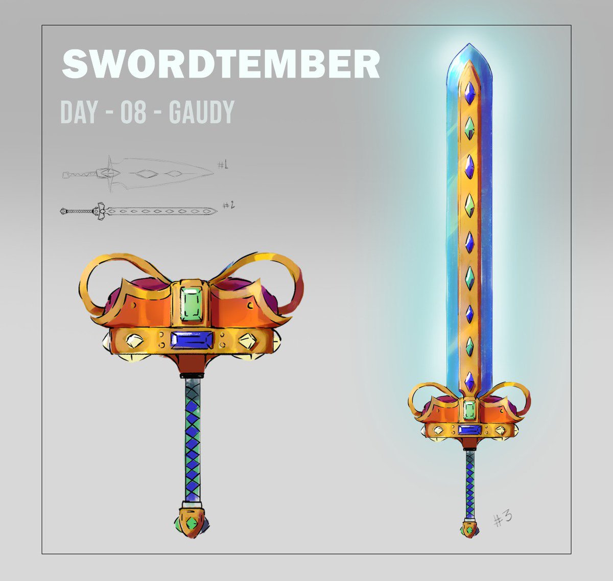 Swordtember Day 8: Gaudy #sword #swordtember #swordtember2022 #weapondesign #digitalpainting #digitalart #2dart #artdigital #fantasy #prop #day8 #gaudy #ArtistOnTwitter #artshare