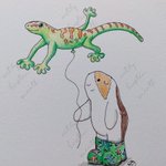 Happy #GeckoloonDay Everyone!! 🦎🎈✨ .. #animaloon_collective @Animaloonies …. This little Gecko wanted to float on a balloon instead. Hope that is ok with the Baron 🤞🥺@JonsCrazyTweets … #Gecko #Illustrator #Illustration @ProcreateEDU #cartoon