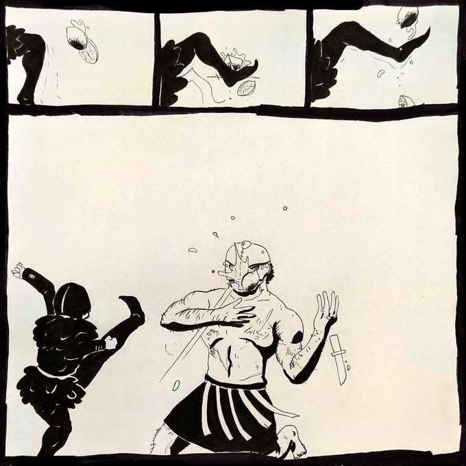 The final blow puts an end to the fight #inktober #inktober2021 day 26/31 #inktober2021connect @inktober #handdrawn #drawing #ink #bw #illustration #comic #ballpointpen #muji #gellyroll #fabercastell #connect #late