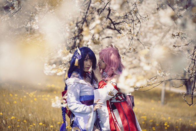 One day after Ei… it’s Yae‘s birthday! 🩷 Raiden Shogun / Ei 💜 @kazenary Yae Miko 🩷 @AN0RIEL 📷 @reem_tau #gemshinimpact #genshincosplay #hoyocreators