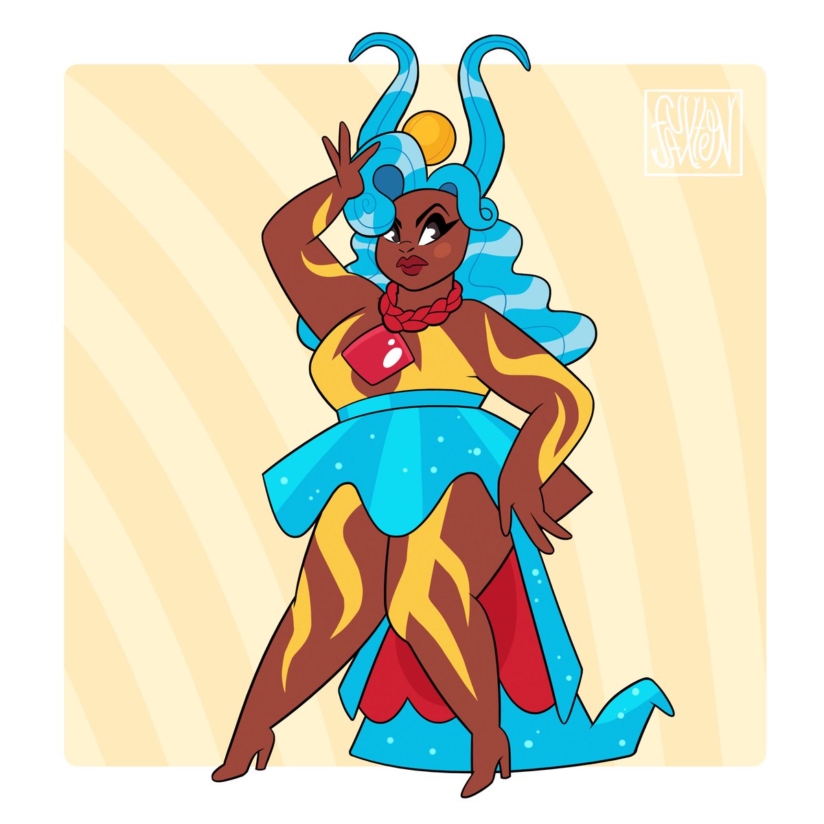 "Is you hungry, 'cause bitch, I'm baked!" @kornbreadTMFS Patreon Request from Peyton 😁 #RupaulsDragRaceSeason14 #Cartoon #Illustration #Gemsona #KornbreadTheSnack