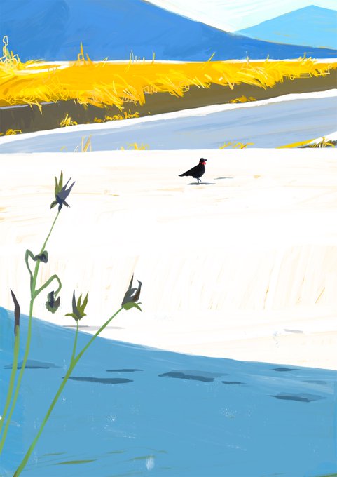 赤いネクタイのカラス(2022) 彼は白い雪の上では自分が目立つのを知っている。ただでさえ赤いネクタイが目立つのに。#illustration #procreate #painting #RedTie #crow #genarai