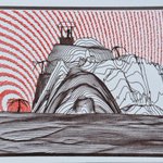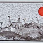 #inktober 28. "Camping" #plottertwitter #generative #genartclub – more interesting sky patterns. made with a very simple modulus formula (with various random multipliers on x,y,radius)