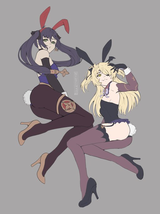 Bunny Mona and Fischl 🐰 . . . #genshinimpactfanart #GenshinImpact #genshinmona #genshinfischl #MonaMegistus #Fischl #animeart