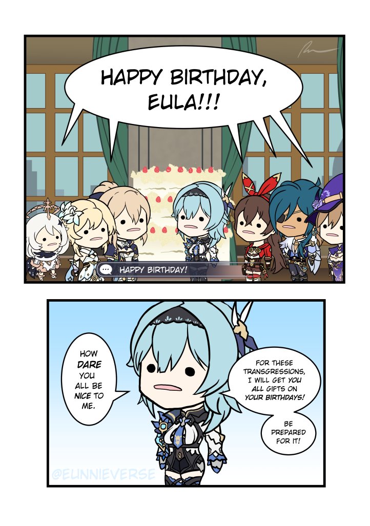 Dumb_Eula.png Her vengeance shall be swift and will likely involve cake. #原神 #GenshinImpact #Eula #genshinjean #Amber #Kaeya #genshinlisa