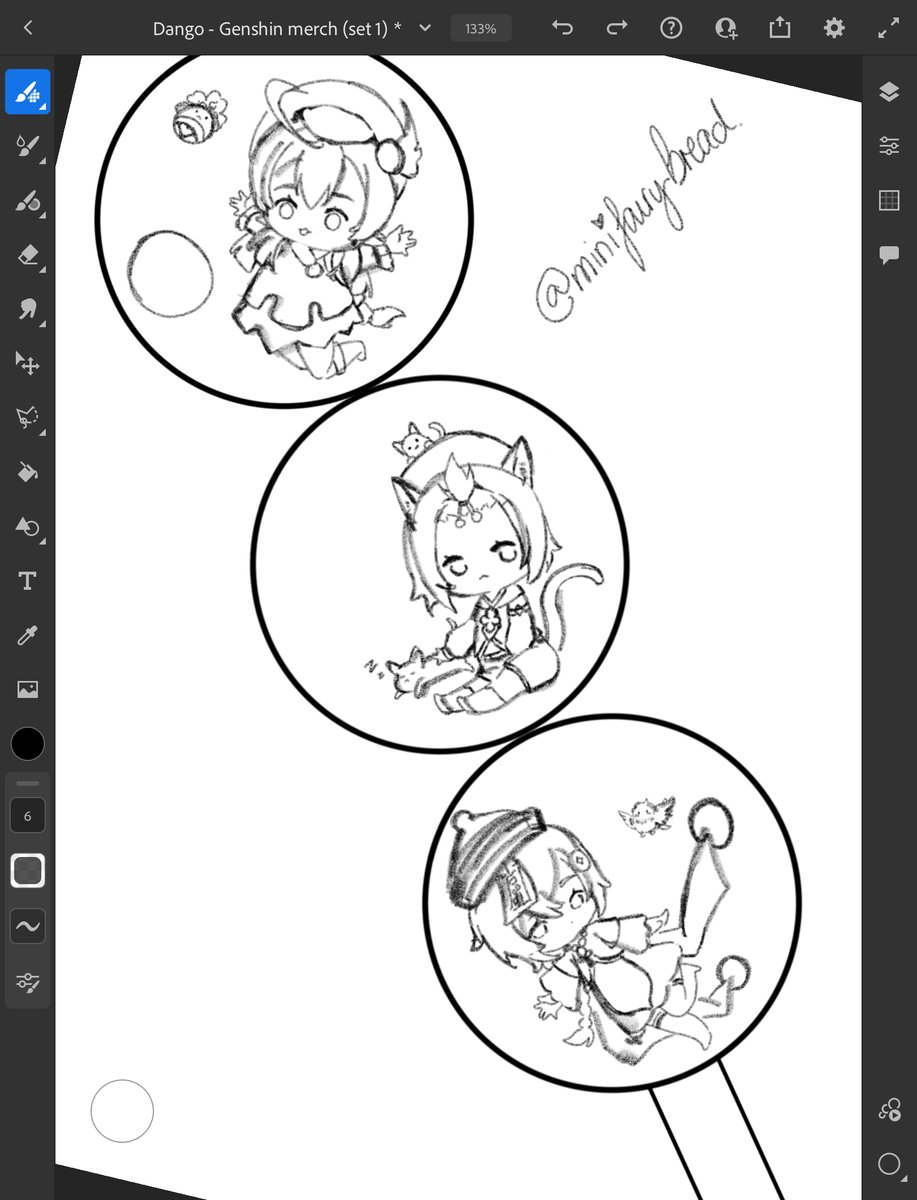 Whether it'll be a resin dango charm or stickers I'm not sure yet, but here's some WIP #Genshinlmpact #genshinchibi #genshinimpactfanart #qiqi #klee #diona