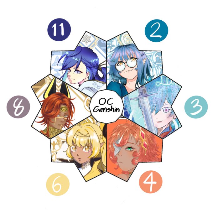 #วงล้อสี OC🌟Genshin หมายเลขสี🌈เรียงตามเข็มนาฬิกา สามารถกดไปติดตามผลงานของนักวาดแต่ละท่านได้เลยค่ะ✨✨ 2.Facebook: Pitchaya Phoorattnapitch 3.@EscapiaZzz 4.@meowtalay 6.@Cynthy_Sonata 8.@owllom13 11.@blood_paper #GenshinImapctOC #OCgenshin #GenshinImpact #原神 #原神イラスト