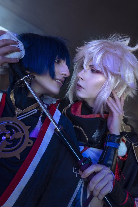 "We are more alike than you think" Ph: @ lilnessph Kazuha : @faeriehime #genshinimpact #genshinimpactcosplay #genshinimpactscaramouche #genshinimpactkazuha #scaramouchecosplay #kaedeharakazuhacosplay #kazuscara