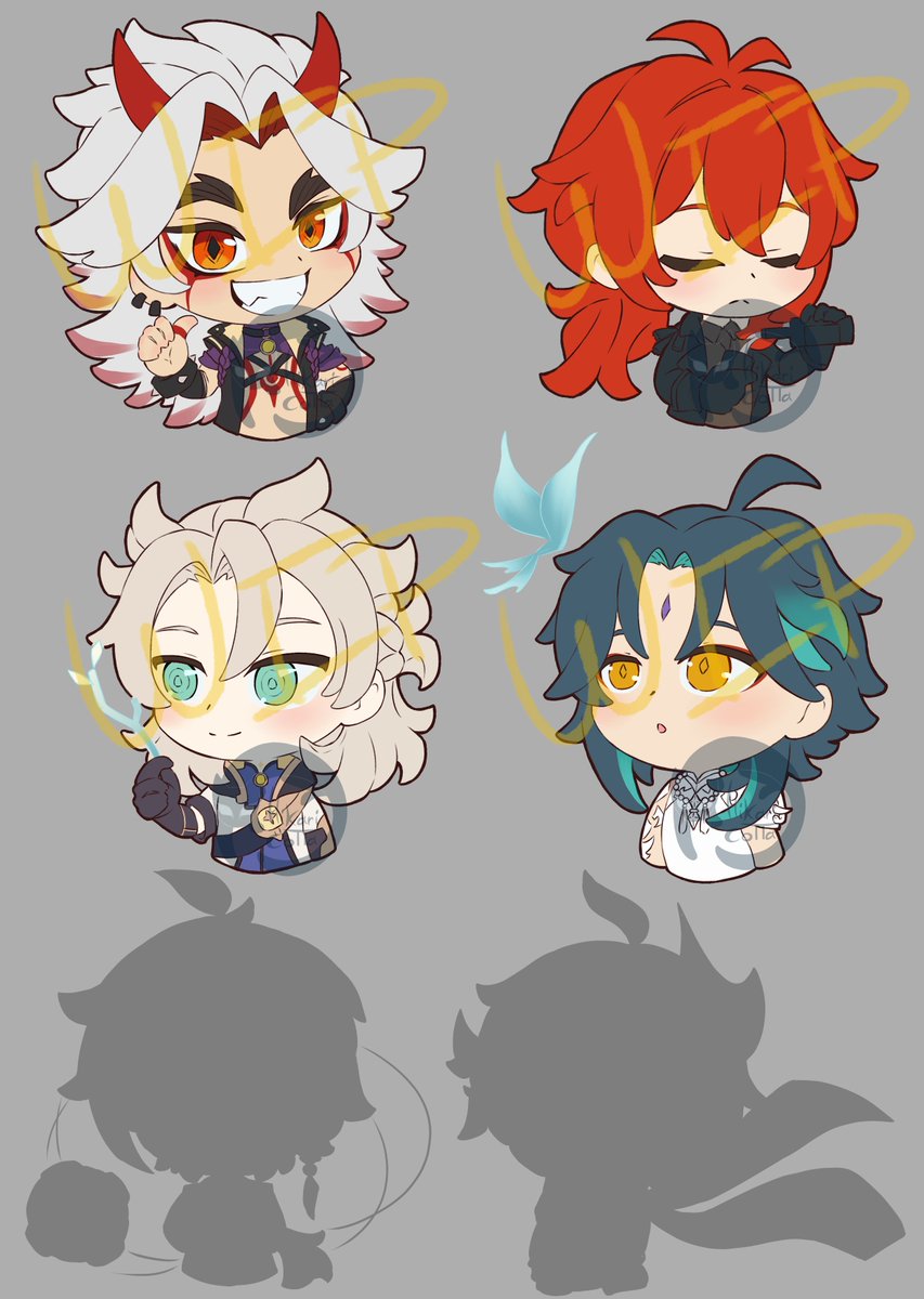 Working on something special to celebrate Itto's arrival to the game!! Can you guess the two mistery boys?? I also tried really hard to emulate the game emote's style for this little project. #genshinimpact #genshinimpactstickers #genshinimpactfanart #itto #diluc #xiao #albedo