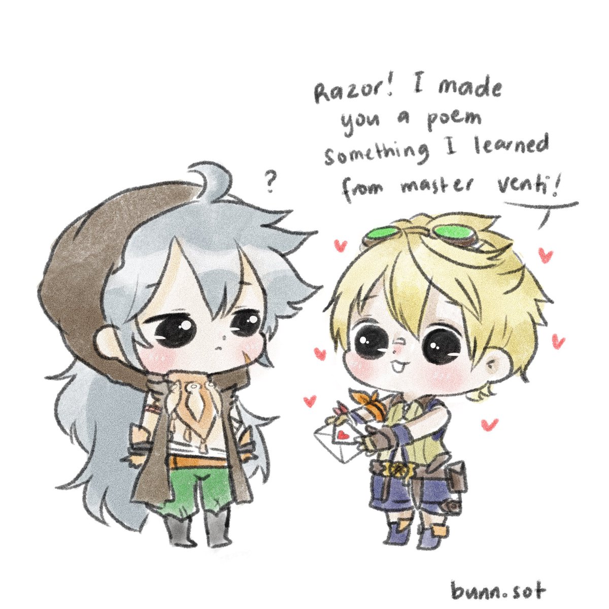 Remember that venti banner event where he asked everyone to write poems? That was the day i shipped bennet and razor hard huhu #GenshinImapct #genshin #razor #bennet #genshinrazor #genshinbennet #mihoyo #genshinimpactfanart