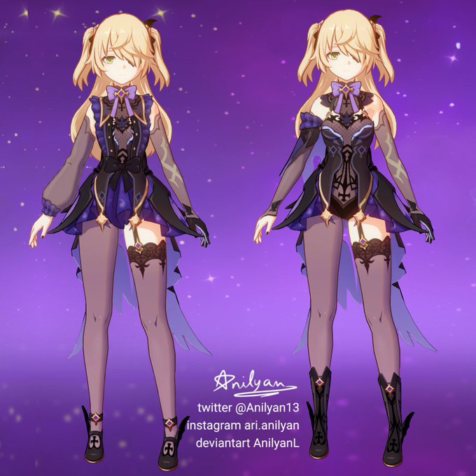 Nothing against sexy characters, ok? I just thought she was a bit too young to look like that and retouched her outfit slightly. #GenshinImpact #genshintwt #Genshin #Genshinfanart #genshinskins #gothic #Fischl